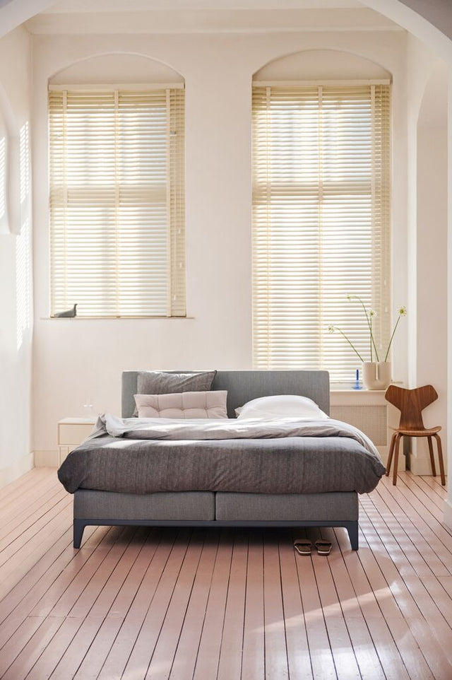 Auf dem Rahmen des Boxspringbettes Criade liegen zwei Boxen, darüber die Matratzen. Du kannst aus zwei Varianten an Matratzen wählen: die stoffbezogene Boxspringmatratze oder eine klassische weiße Matratze. Wenn Du Dich für die stoffbezogene Alternative entscheidest, sorgt ein Topper für zusätzlichen Schutz der Matratze. In unserer online-Beratung kannst Du Deine Matratze nach Deinen Bedürfnissen und Wünschen zusammenstellen lassen und sehen, welche am besten geeignet ist und Deinen Körper am besten unterstützt. Alle Auping Matratzen sind mit Sorgfalt entwickelt worden und sorgen für einen guten Schlaf.
