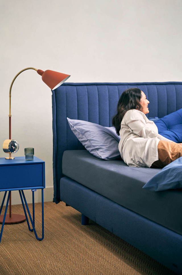 Das Original ist ein reichhaltig gefülltes Boxspringbett: Die Box besteht aus einer Spiralunterfederung und Taschenfedern. Die auping Unterfederung ist zu 80 % offen, wodurch das Boxspringbett sehr gut belüftet wird. Die Taschenfedern sowohl in der Box als auch in der Matratze sorgen dafür, dass Du Dich nachts leicht drehen kannst und im Schlaf gut gestützt wirst. Das Boxspringbett Original ist auch in einer teilbaren Variante erhältlich: ein komplettes 2-Personen-Boxspringbett, bei dem beide Teile leicht auseinander- und zusammengeschoben werden können, da wir die Beine mit Rollen versehen. Auf diese Weise wird guter Schlaf auch zu nützlichem Schlaf.
