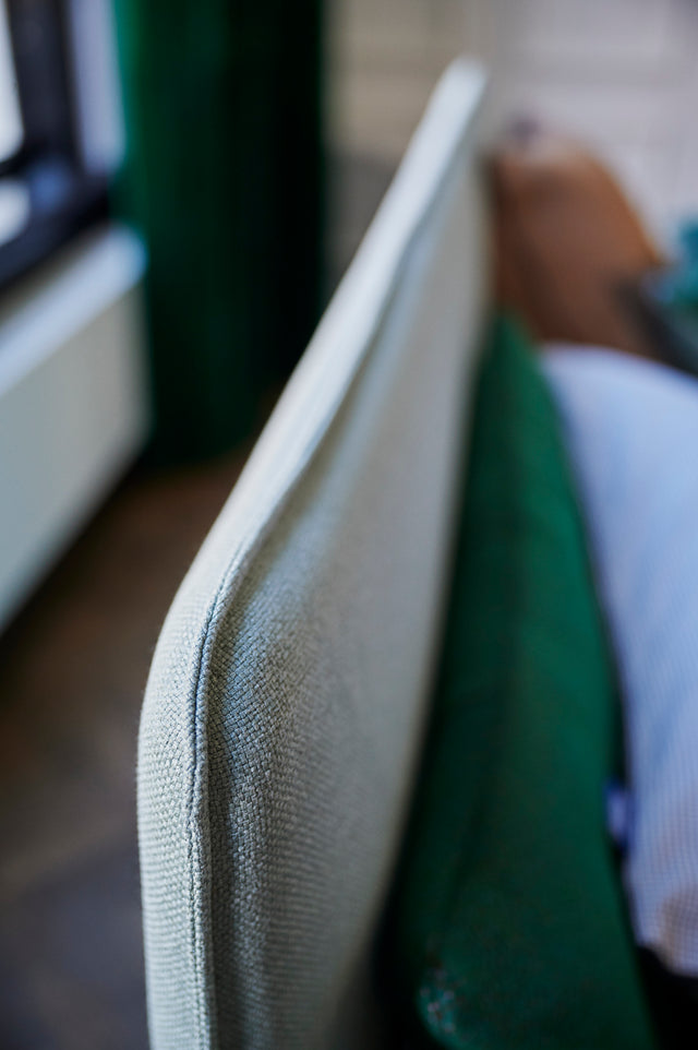 Die Kopf- und Fussteile sind rundum gepolstert und schön verarbeitet. Sie werden von Hand bezogen, damit der Stoff perfekt sitzt. Für das Boxspringbett Original gibt es acht Kopfteile und ein Fussteil.